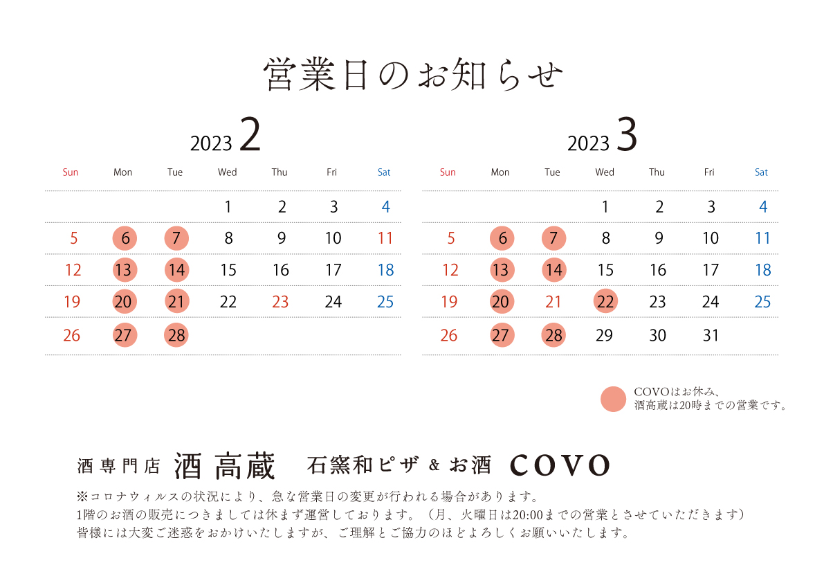 ※2月からCOVOのランチ営業時間が変更となっております。ご来店の際はご注意くださいませ。