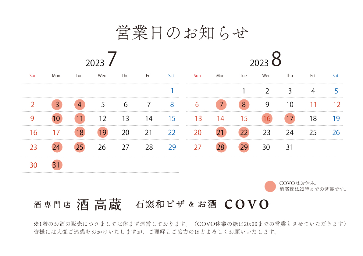7月8月営業日のお知らせ&新銘柄入荷